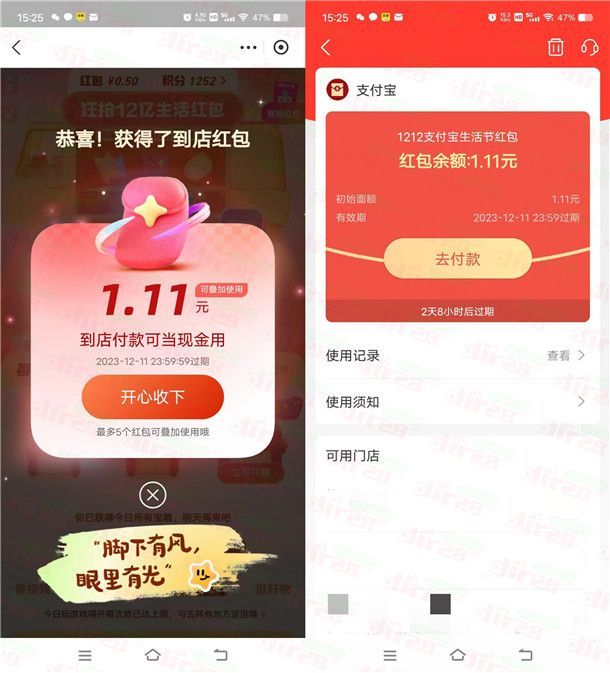 支付宝1212生活节开宝箱抽1-88元支付宝红包 亲测中1.61元