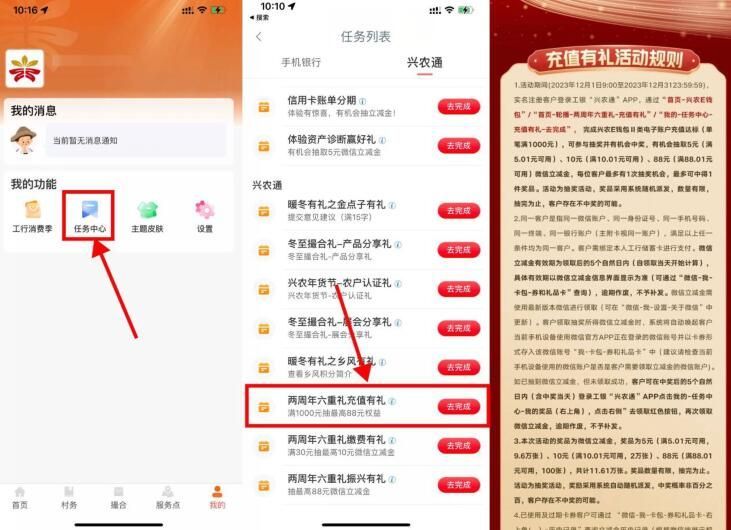 【工银兴农通抽取5~88元立减金】工银兴农通APP -> 我的 -> 任务中心 -> 开e钱包并充值1000元 -> 抽取5~88元立减金。