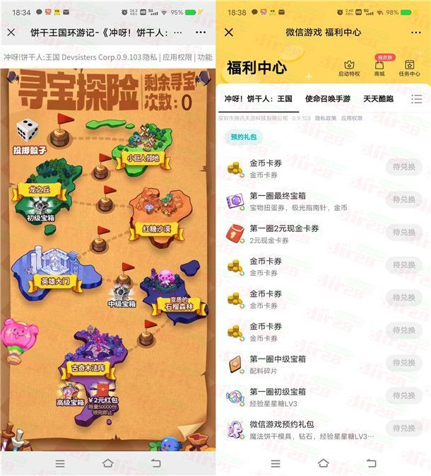 冲呀饼干人王国寻宝探险领2元微信红包卡券、2个Q币卡券