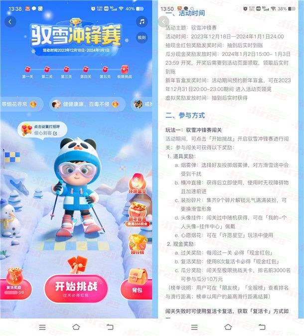 小编提示:打开快手APP搜索【驭雪冲锋赛】进去,闯关至终极挑战关卡的前3000名可以瓜分10万现金红包(1月2日15:00瓜分),预约右侧新春盲盒还可以在12月31日20:00抽最高666元现金红包