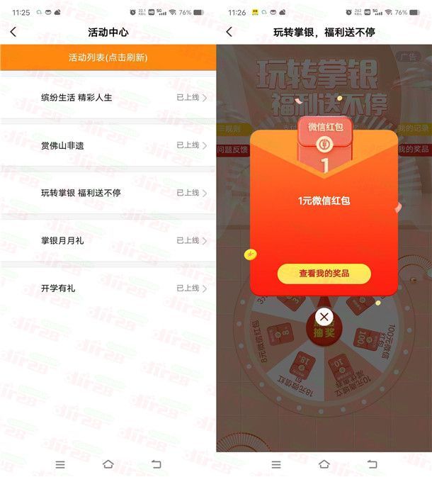 农业银行玩转掌银多个活动抽1-100元微信红包 亲测中2元