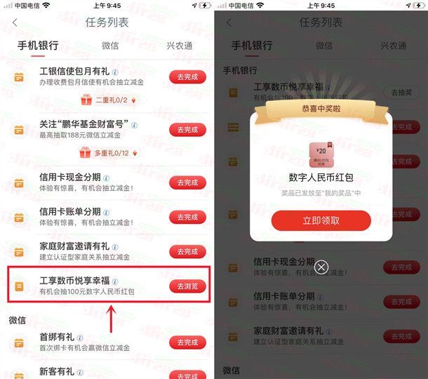 工行工享数币悦享幸福抽5-100元数字人民币红包 亲测中20元