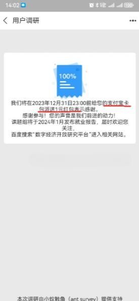 支付宝调查问卷领1元红包 可乱填,都可以去参与下,红包不秒到,12月31日才开始发放。