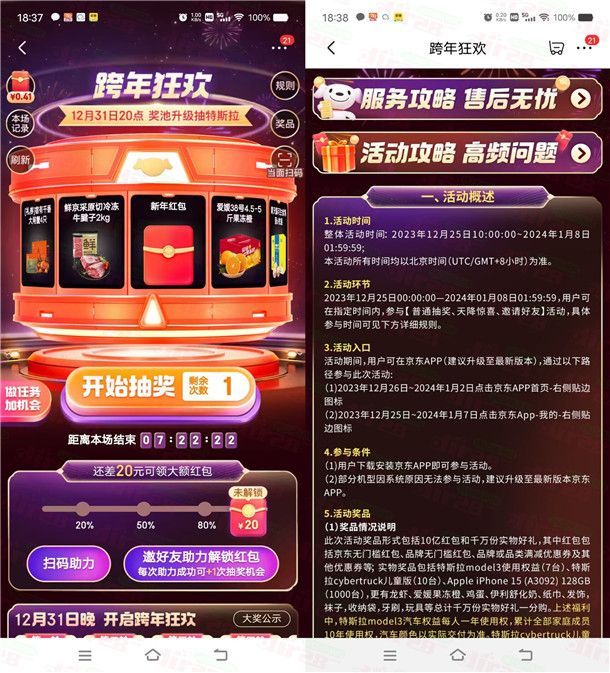 立即参与:打开京东APP搜索【跨年狂欢】进去活动里参加