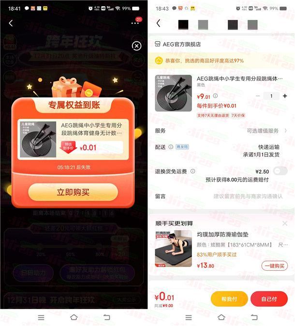 京东跨年狂欢活动瓜分10亿无门槛红包 还可0.01元撸实物