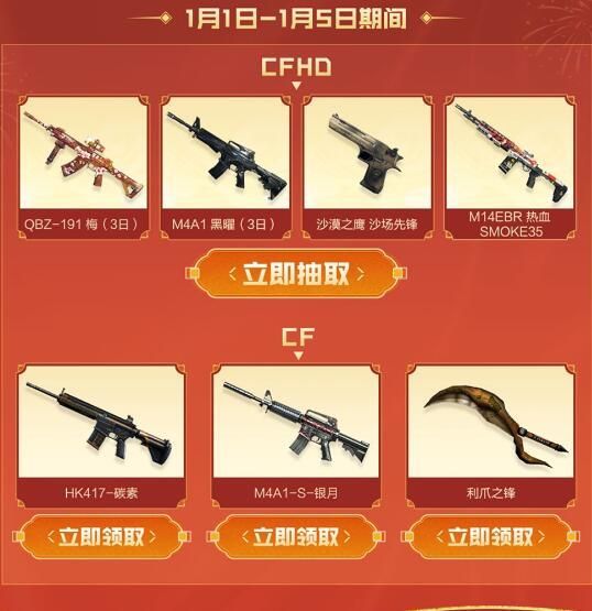 CF工作日礼包1月2024 领HK417碳素 M4A1S银月等
