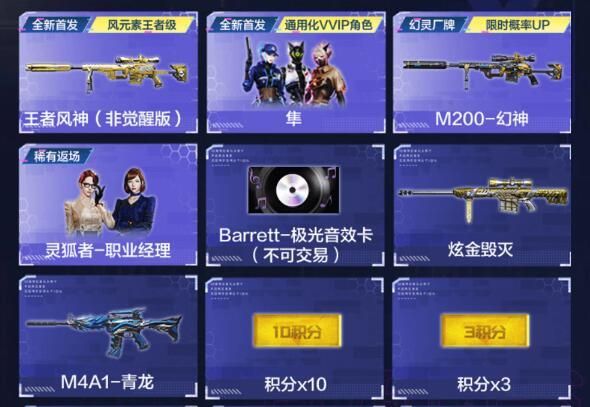 CF隼击长空幻灭神威 抽王者风神非觉醒版 隼 M200幻神等,购买复活币就可以抽奖了,有兴趣的可以去参与下。