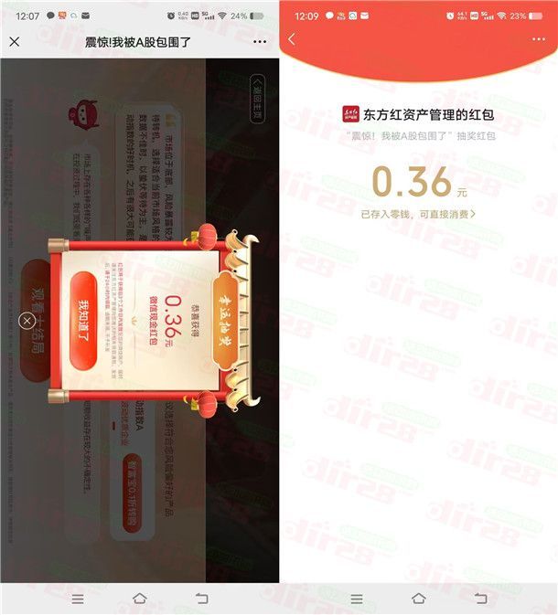 东方红资产沉浸式虚拟体验小游戏抽微信红包 亲测中0.36元