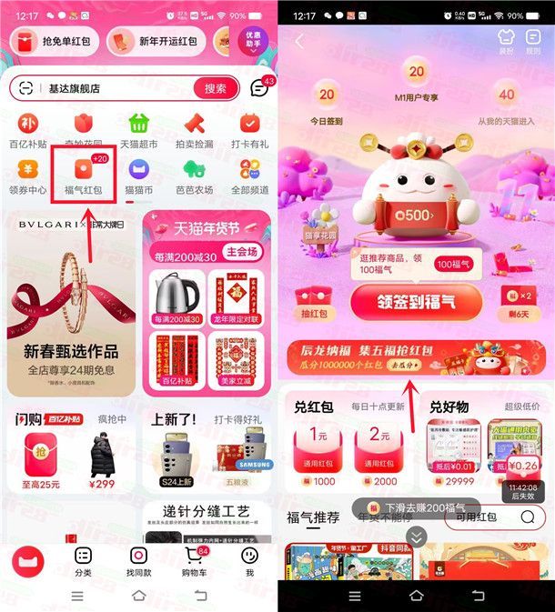 小编提示:打开天猫APP,首页点【福气红包】进去点横幅【辰龙纳福集五福抢红包】进去,消耗10个福气抽奖1次,刚中1个万能福,需要万能福的可以去试试,非必中