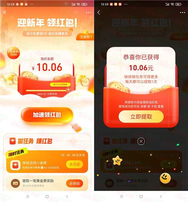 10元以上现金红包、财运红包