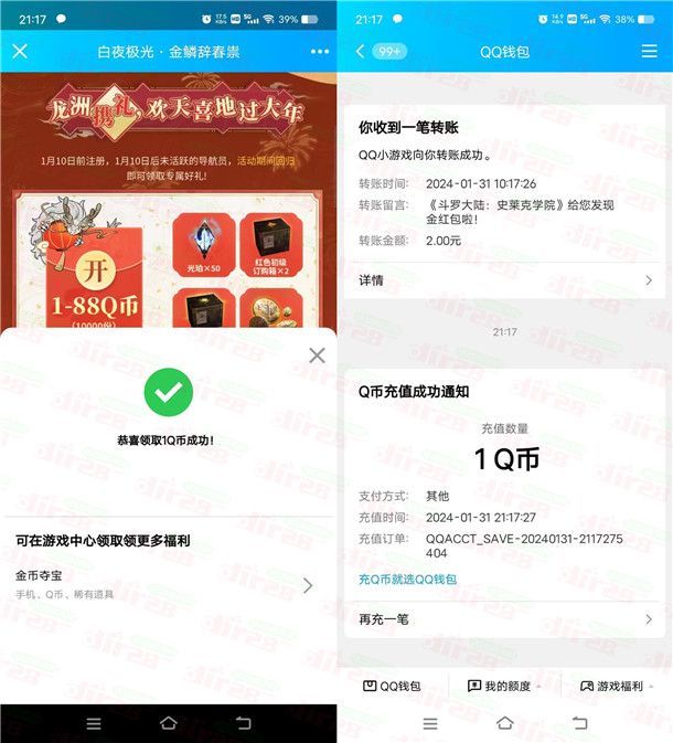 白夜极光微信和QQ的2个活动,写在一起便于大家一起参加,通过打开微信和手机QQ进去活动里,幸运用户和回归老用户可以参加,登录游戏就可以领取到1-188元微信红包、1-188个Q币,安卓手机不想下载游戏的也可以去腾讯先锋APP秒玩登录游戏再去领,数量限量。