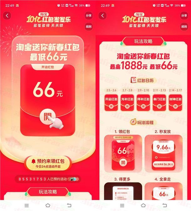 淘宝新春红包发发乐活动瓜分10亿无门槛红包 最高1888元