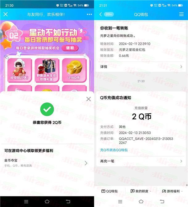 元梦之星QQ手游与友同行抽2-214个Q币 亲测中2个Q币