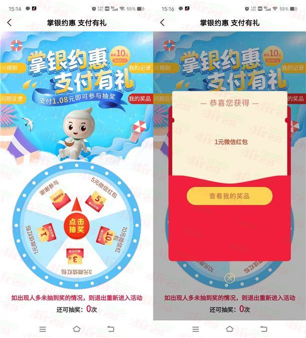 小编提示:全国都可以去,部分用户如果提示非受邀就参加不了,手机扫码跳转到中国农业银行APP活动里(如果不跳转就手机浏览器扫),每支付1.08元可以抽奖1次,可以抽4次,支付的钱会7个工作日原路退回,不会反撸,刚中1元