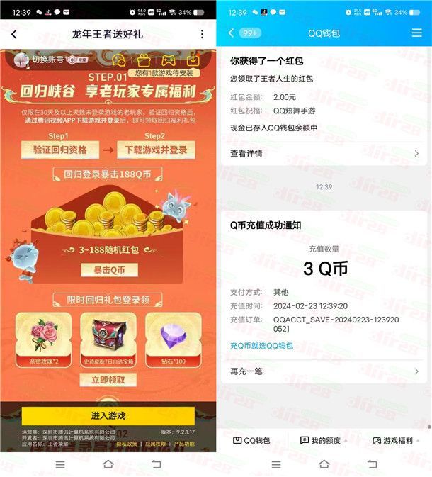 王者荣耀手游回归老用户领3-188个Q币 亲测3个Q币秒到