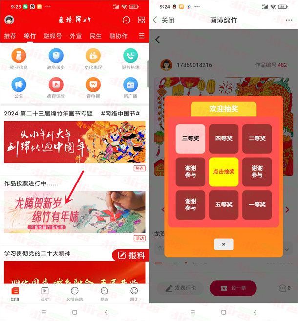 画境绵竹APP龙腾贺新岁投票抽1-5元现金红包 亲测中1元
