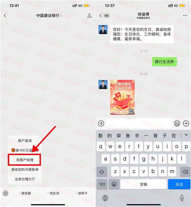 2、找到建行经理的微信要建行生活券,就可以领10~50元建行生活外卖券,这是个受邀活动,也并不是每个加了建行经理的都能领,有的人不能领会让你理财下个月领