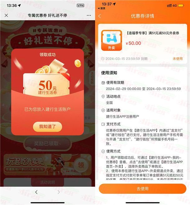 10-50元建行生活外卖券
