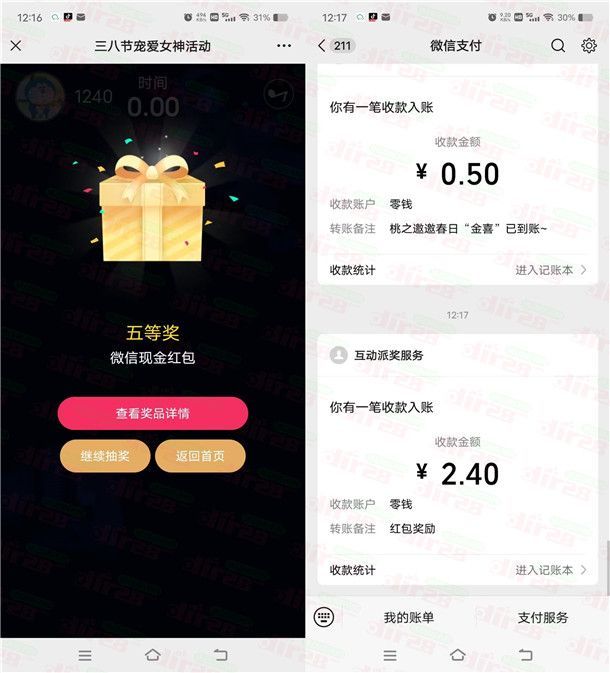 参加横琴人寿举办的38节宠爱女神活动,通过打开微信进去活动里,只要在小游戏中分数达到200分就可以进行抽奖,跟以往横琴类似的活动一样,有机会中到随机金额的微信红包、或者琴豆,小编测试中到2.4元红包,非必中。