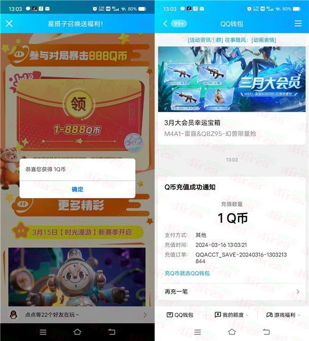 元梦之星QQ手游星搭子召唤抽1-888个Q币 亲测中1个Q币
