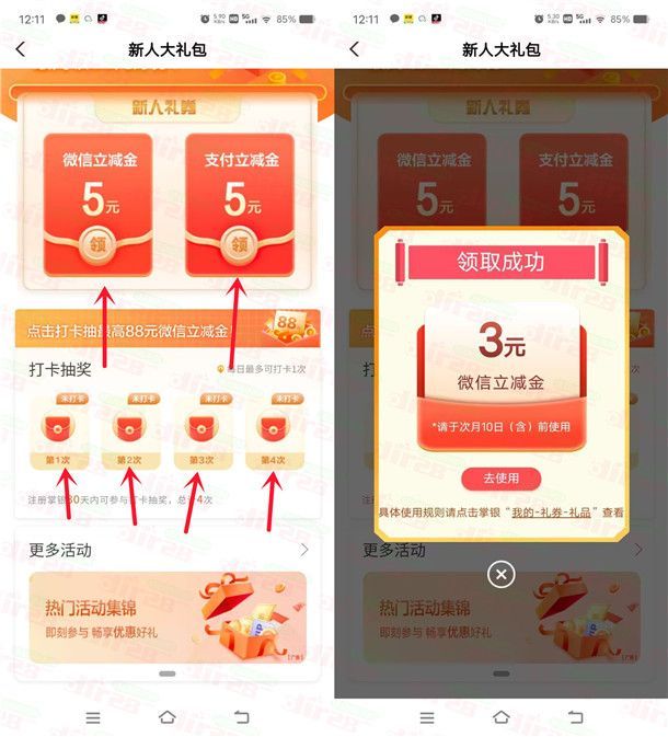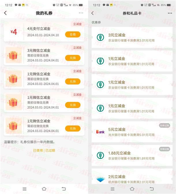 这是农行的一个粗暴给力活动,通过打开中国农业银行APP活动里,里面每一个都可以点击领取,小编测试加起来中到3元+1元+1元+1元微信立减金(合计有6元),得到的微信立减金全国农业银行卡都可以用,数量限量。