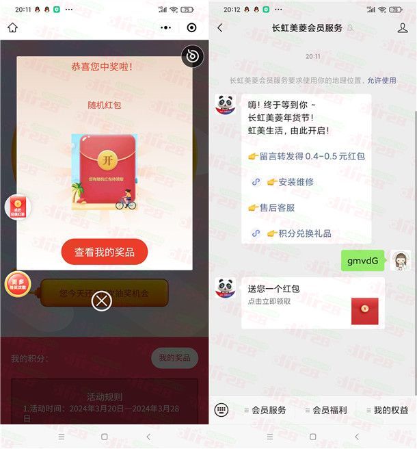 长虹美菱会员服务小程序抽0.3-99元微信红包 亲测中0.3元