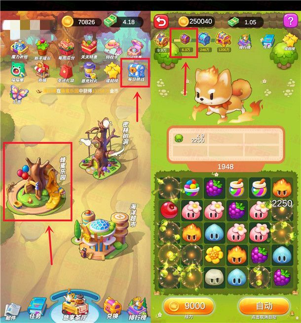 3、然后返回游戏首页点击【每日挑战】用1权益卡激活1元支付宝现金,激活后再去刚刚的房间【蜂蜜乐园】打一会,只要累积伤害达到20万,就可以返回游戏首页【每日挑战】里领取1元现金到支付宝,领取后秒到