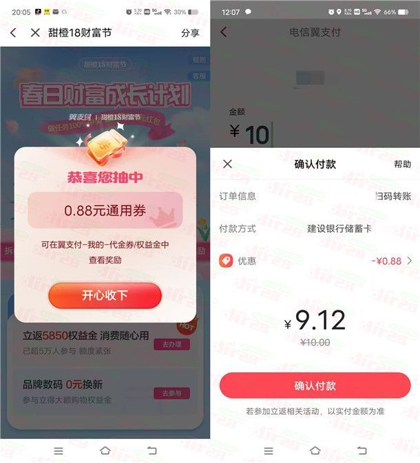 参加翼支付举办的夏日财富成长计划抽最高100元通用红包活动,通过打开翼支付APP进去活动里,完成最后2个简单的任务就可以抽奖2次(一个是浏览、一个是假分享),每天都可以去抽,有机会中到随机金额的通用红包、话费券等等,小编测试中到0.88元通用红包,中到的通用红包可以用翼支付APP扫自己的个人微信收款码就可以抵扣变现,非必中。