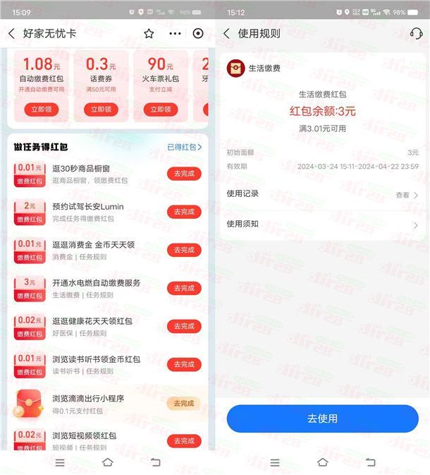 支付宝好家无忧卡领多个无门槛生活缴费红包 亲测3元秒到
