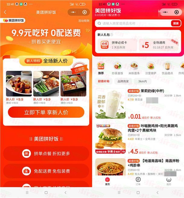 美团拼好饭活动0.01元吃各种美团外卖、奶茶饮料等等