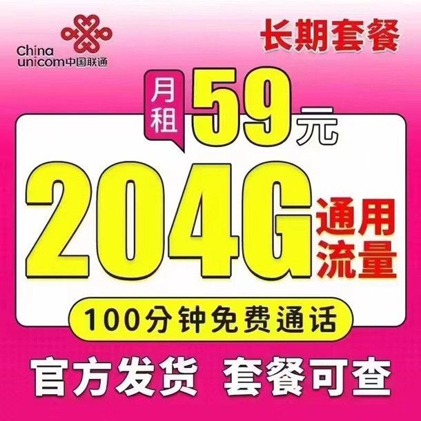 59大流量套餐:204G通用流量+100分钟(①需上传三张照片+②注意接听10016后台电话)