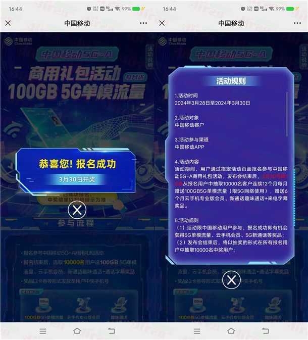 小编提示:进去先报名,报名后在3月30日晚上18点随机抽取1万名赠送1200G手机流量(每个月赠送100G流量)