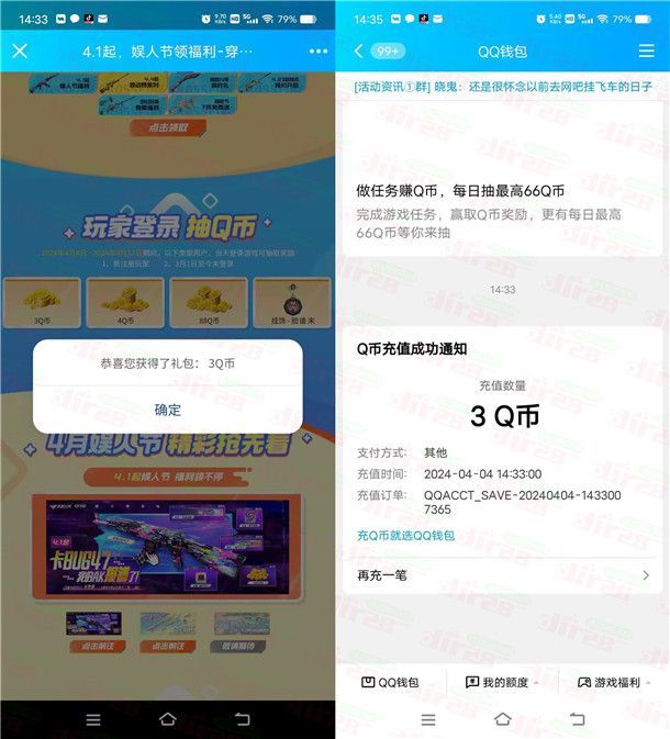 CFHD娱人节领福利新老用户抽3-88个Q币 亲测中3个Q币