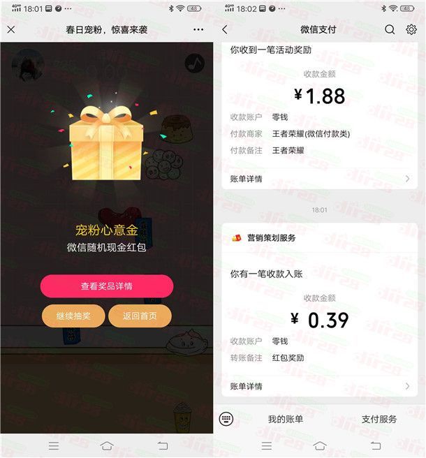 参加华夏基金举办的春日奶茶挑战小游戏抽红包活动,通过打开微信进去活动里,小游戏中用手指控制奶茶接下食物,只要小游戏分数达到80分就可以进行抽奖,每个微信可以抽奖3次,有机会中到随机金额的微信红包,小编测试中到0.39元,非必中。