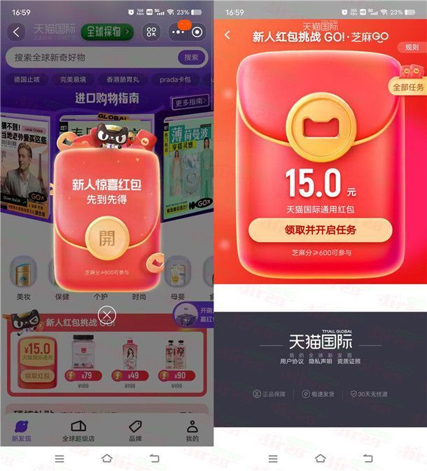 立即参与:打开淘宝APP搜索【天猫国际】进去参加