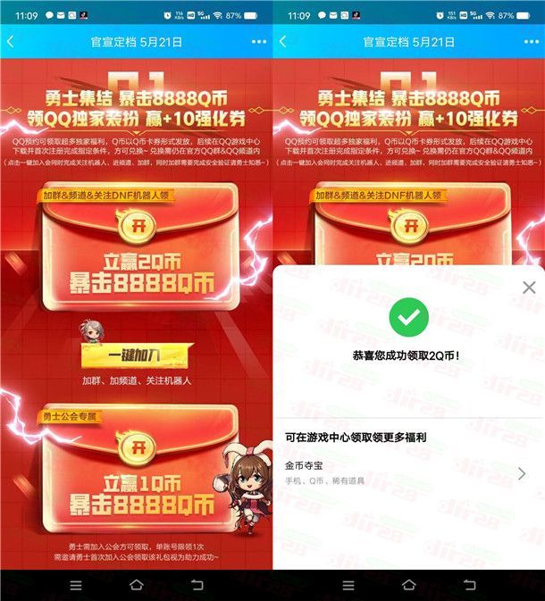 地下城与勇士预约领取2-8888个Q币卡券 手游上线可兑换领取