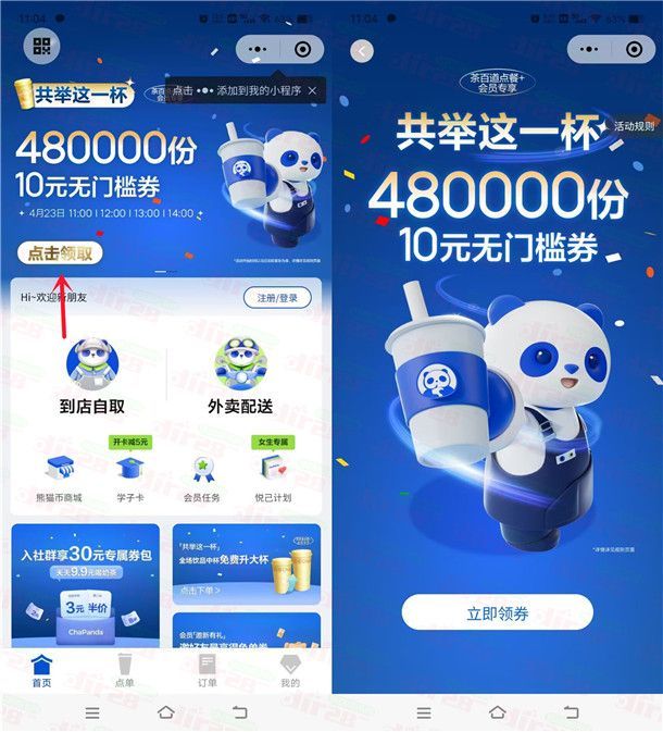 茶百道小程序免费抢10元无门槛券 每个整点限量12万份