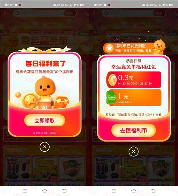 淘宝每天抽最高200元无门槛红包、天猫超市卡 亲测中1.3元