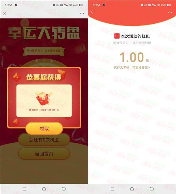 参加重庆健康科普举办的职业健康保护行动线上答题瓜分万元红包活动,通过打开微信进去活动里,每个微信ID账户登录后从题库系统随机抽取5道题目,每个微信ID每天答题次数为3次,答对4题及以上将获得1次抽奖次数,有机会抽取1个微信现金红包,非必中。