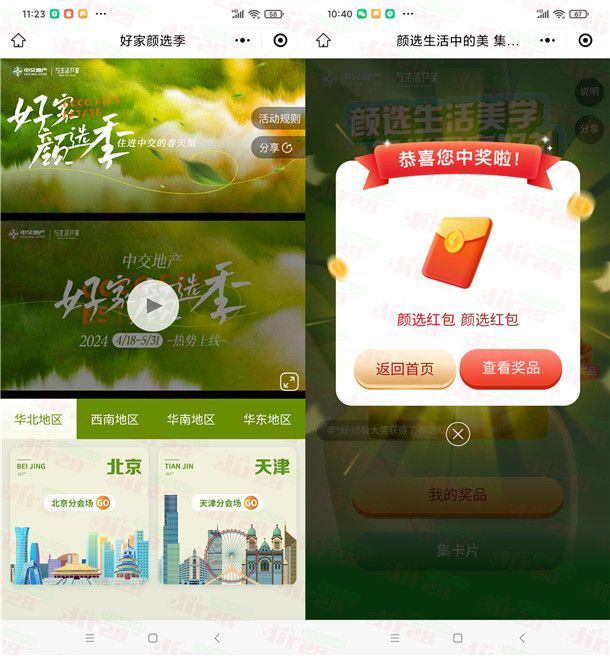 参加中交优家举办的集拼图赢好礼活动,通过打开微信进去小程序活动里,进去随便选择一个地区,再点“赢好礼”进去,完成几个简单的浏览任务合成抽奖,有机会中到随机金额的微信红包,小编测试2个微信都中到1.88元,中到的红包需要手动提现不秒推,非必中。