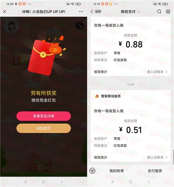 参加掌上龙岗举办的小龙包微信小游戏抽红包活动,通过打开微信进去活动里,小游戏通过重力控制角色跳跃,只要分数达到100分就可以抽奖,每个微信每天有3次游戏抽奖机会,有机会中到随机金额的微信红包,小编测试中到0.51元,非必中。