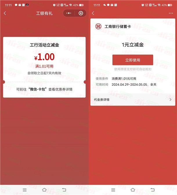 1元微信立减金