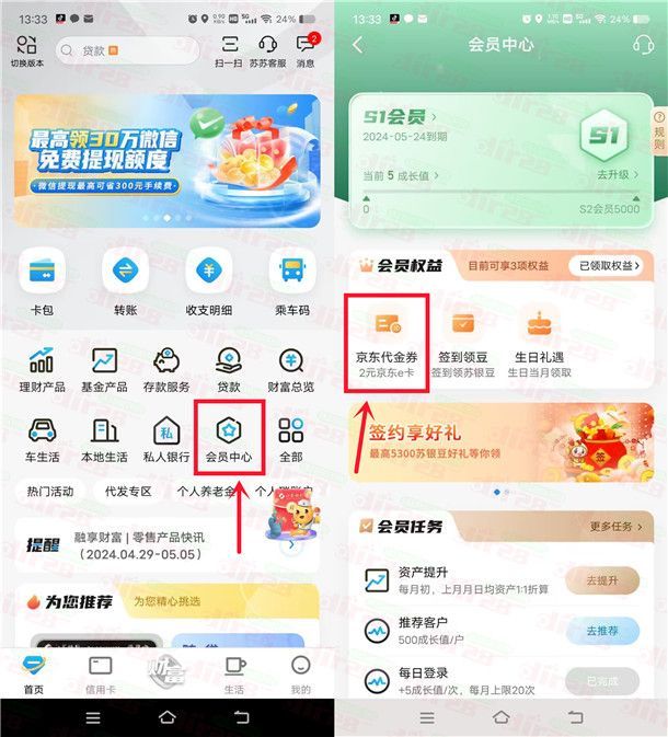 参加江苏银行举办的会员中心权益活动,通过下载打开江苏银行APP注册登录,先完成实名认证(只要实名认证就行,不用开通电子账户),然后再去APP首页点“会员中心”进去,就可以领到2元京东卡,每个月都可以领1次,2元京东卡可以自用也可以卖。