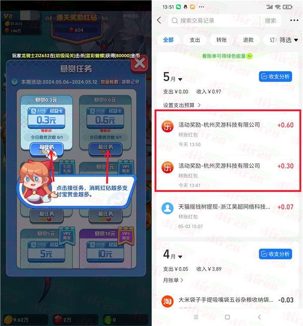 又来一个简单的手机小游戏领0.9元现金红包的活动,所有安卓手机都可以去,通过下载打开“跃向星空”APP,注册登录后,按照提示进去游戏里玩几分钟,只要达到指定数量的红钻就可以分别兑换到0.3元+0.6元支付宝现金,兑换的现金红包秒到支付宝余额里,领完0.9元就可以无需再玩了,因为后续的红包不好拿。