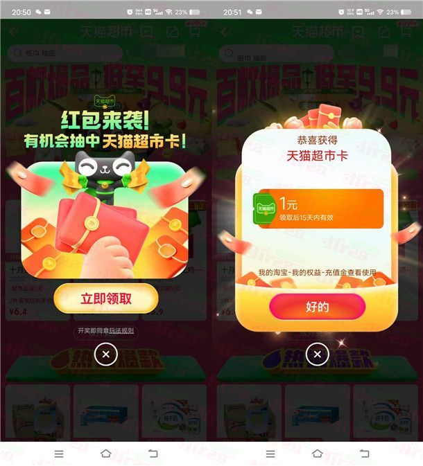 红包红包来袭点弹窗抽随机天猫超市卡 亲测中1元秒到
