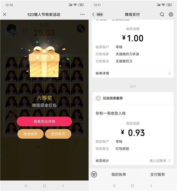 横琴人寿520情人节抽随机微信红包、琴豆 亲测中0.93元