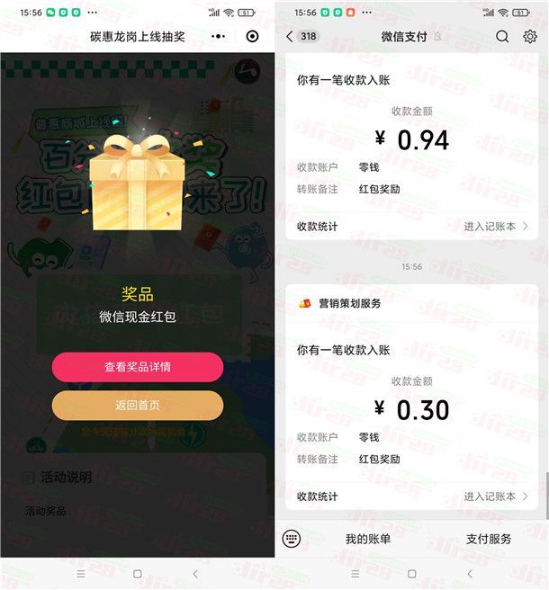 小编提示:微信扫码进去,点击弹窗或者右侧图标进去抽,刚中0.3元,凡科黑号参加不了