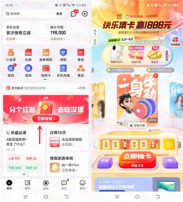 京东金融618周年庆集卡瓜分最高6188元现金红包、实物
