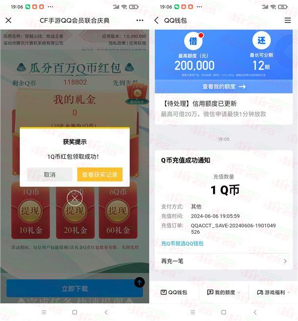 穿越火线QQ联合庆典新老用户领1-6个Q币 亲测1Q币秒到