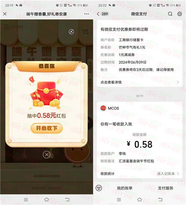 汇添富基金端午安康赠香囊抽3万个微信红包 亲测中0.58元